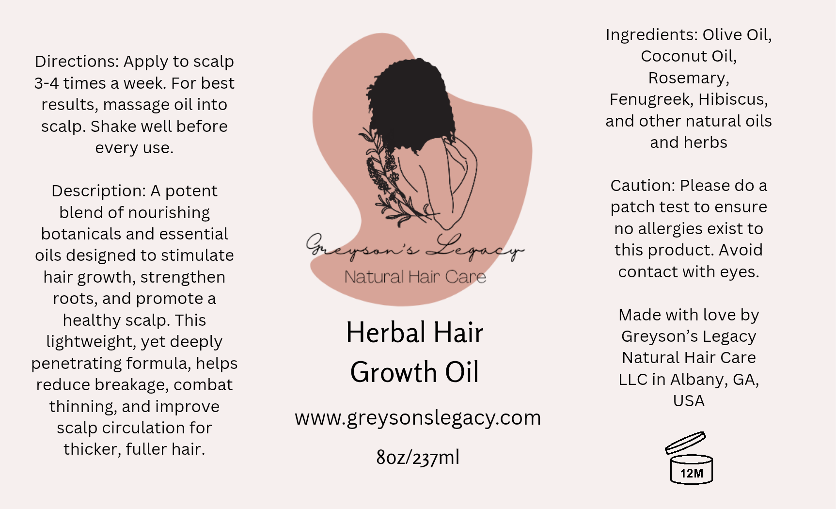 Unlock the secret to stronger, longer, and healthier hair with our Herbal Hair Growth Oil. Infused with a potent blend of natural herbs and nutrient-rich oils, this lightweight yet deeply nourishing formula stimulates hair follicles, strengthens roots, and promotes thicker, fuller growth. Designed to soothe the scalp, reduce breakage, and restore moisture, it absorbs quickly without leaving a greasy residue. Perfect for all hair types, this revitalizing oil enhances shine, improves scalp circulation, and supports a healthy hair journey.